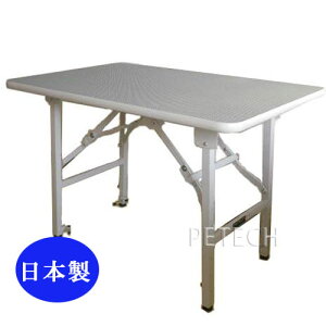 ドッグショーなどの持ち運びにピッタリ。 必要なときにすぐ設置できる便利なワンタッチタイプの業務用トリミングテーブルです。 折りたたみ時厚み約10cm。 ネジ式のアジャスター付きなので、お店のフロアーに合わせて調