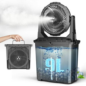 【新型ミスト扇風機9L大容量水タンク】従来のキャンプ用扇風機と比べ、Ausicが新たにアップグレードしたミスト機能は、風を送りながら肌に涼しい微細な水霧を感じさせます。細かいミストが夏の高温環境で素早く蒸発し、お肌に涼しさをも