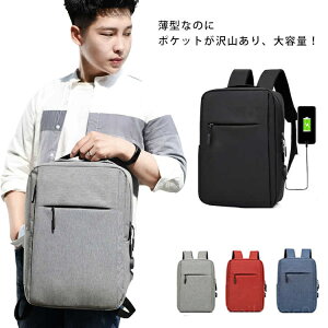 薄型なのにポケットが沢山あり、大容量!すっきりしたスクエアフィルムがスタイリッシュでおしゃれなリュックサック。USBポート付きなので、リュックを背負ったままスマホの充電ができるからとても便利。軽くて丈夫な生地に高撥水機能