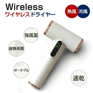 コードレスドライヤー ワイヤレスドライヤー 速乾 強風量 3段階調整 ドライヤー ヘアドライヤー ワイヤレス 冷風 熱風 ポータブル 軽量 USB充電 快速充電 TYPE-C充電 過熱保護 大