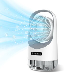 【冷風機 冷風扇・1台多役】送風、ミスト加湿、冷気の3つの機能を兼ね備える進化版卓上冷風扇です。水タンクに水や氷を入れて、素早く爽やかな涼風を発生させ、送風とともに超音波で繊細なミストも噴出され、扇風機より涼しくエアコン