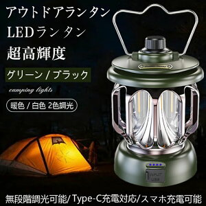 充電式LEDランタン ランタン LED 充電式 大容量 キャンプ ライト スマホ充電 キャンプランタン 双方向充電 無段階調光 2光色 停電対策 電池残量表示 アウトドア 防水 応急充電 防災用品 小型 登山 夜釣り レトロ キャンプ...