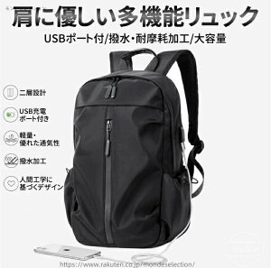 ?商品名 ビジネスリュック 撥水 USBポート付き?商品紹介カラー:ブラック本体サイズ:(約)縦46 ×横 30 ×マチ 16(cm) 35L本体重量:約0.9kg表地:撥水レザー 裏地:ポリエステル外部収納:ポケット3個(上段 中段...