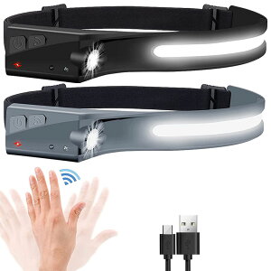 【2個セット】ヘッドライト LED 充電式 USB LEDデュアル光源 ヘッドランプ 5種点灯モード 50g超軽量 高輝度 アウトドア用ヘッドライト IPX4防水 防塵 1200mAh大容量バッテリー 最大8時間使用可能 SOS点滅 ...