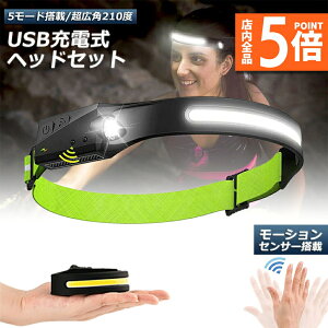 【商品名】ヘッドライト 【おすすめポイント】 【5つの照明モード】電源ボタンを押す毎に下記の実用な5つの照明モードが循環に変わります。COB強光モード(約350ルーメンの輝度/満充電で点灯時間は約2....