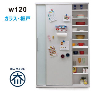 吊り戸の下にも設置をしやすいフレッシュシリーズの高さ165cmのダイニングボードです。ガラスは4ミリ厚で割れにくく、万が一割れても破片が飛び散らない飛散防止フィルムを貼っています。ガラス扉はスライド式のため、狭いスペースでも使い易いで...