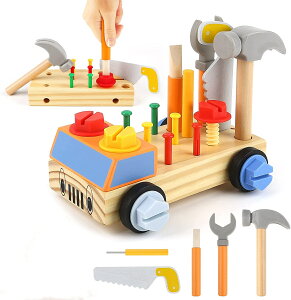 子供が夢中になる大工さんままごとセット。手に収まるちょうど良いサイズ。一人で遊ばせるのが危険な工具も、木製なら安心。ドライバーやレンチ、ハンマーを使って木製パーツを組み合わせたり大工遊びを楽しめます。おし車...