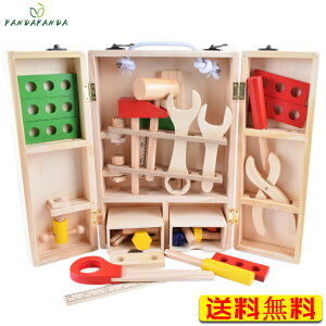 【ジャンル】知育玩具 【材質】木製(収納ボックスは木、金具、ヒモ) 【対象年齢】:6ヶ月以上 【こどもが夢中になる 大工さんセット!】 手に収まるちょうど良いサイズ。 一人で遊ばせるのが危険な工具も...