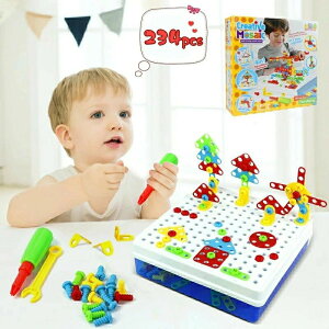 知育玩具 sTEM教育 電動ドリル おもちゃ 大工さん ごっこ遊び DIY 組み立てセット2D 3D 積み木 立体パズル 構築ブロック 変形 カラフル おままごと 贈り物 孫 男の子 女の子 誕生日プレゼント...