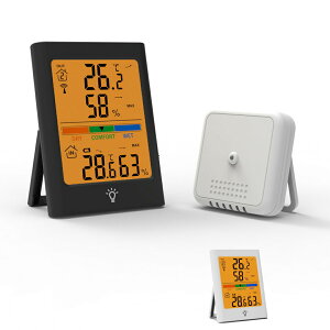 デジタル温度湿度計 外気温度計 ワイヤレス 温湿度計 室外 室内 3つセンサー 高精度 LCD大画面 バックライト機能付き 時計カレンダー/最高最低温湿度/快適レベル/温度と湿度傾向図表示 置き掛け両用...
