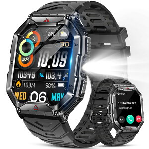 【2025年革新モデル】スマートウォッチ 軍用規格 耐衝撃 Android/iPhone対応 Bluetooth5.3通話機能付き IP68防水防塵 2.1インチ大画面 落下防止 100種類運動モード 活動量計 腕時計...