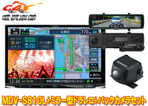 8V型彩速ナビ+ミラー型ドライブレコーダー+バックカメラセット 型番 MDV-S810L+DRV-EMN5700+CMOS-C230。安心・便利な音声操作機能でさらに使いやすくなった彩速ナビと、前後録画に対応したデジタルインナ。