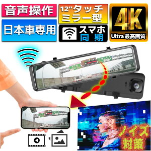 12インチ大画面ドライブレコーダー 大型の12インチ高品質液晶パネル搭載。ミラー型ドライブレコーダー前後同時録画のデジタルミラー式。