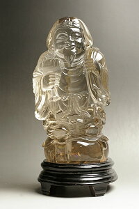 極めて透明度が高い水晶です。色合いは薄いスモーキで、もちろん加熱処理などはしていない天然のスモーキー水晶です。 大黒様はご存知の通り、福を呼び込む縁起の良い神様