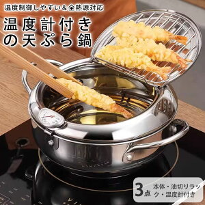 商品説明商品名天ぷら鍋 蓋付き 温度計付き 油切り網付き IH対応 ガス火対応 ガスコンロOK 20cm 24cm ステンレス鍋 鉄製 フライヤー 揚げ鍋 揚げ物鍋 油はねガード 注ぎ口付き 温度制御 ワイヤー付き...
