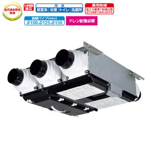 主な機能・仕様 ・ダクト圧損に影響されない「定風量制御」機能搭載 ・紙製全熱交換器(ハイパーEcoエレメント) ・RAダクト接続口は2方向選択可能(浴室接続は除く) ・OAダクト接続口は2方向より1方向選択 ・24時間運転時の風量は1...