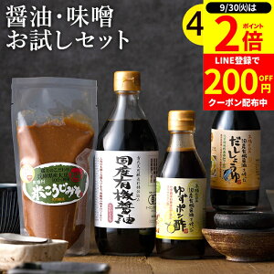 商品情報 ●名称: 国産有機醤油 濃口 500ml、国産有機醤油を使っただししょうゆ 200ml、国産有機醤油を使ったゆずポン酢 200ml、米こうじみそ 300g ●原材料名: 【国産有機醤油 濃口】…有機大豆(国産)、有機小麦(国...