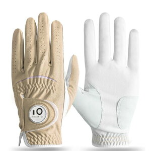 ゴルフグローブ メンズ 天然羊革とミクロファイバーレザーの組み合わせ 柔らかめ 伸縮性 通気性 耐摩耗性 滑りにくいグリップ 両手 雨 汗に強い 全天候モデル ゴルフウェア ゴルフマーカー付き ((ベージュ,左手用),...