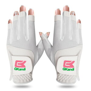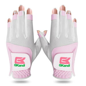 ゴルフグローブ レディース 両手 天然羊革とマイクロファイバーレザー メッシュ素材 柔らかめ 伸縮性 通気性 耐摩耗性 滑りにくいグリップ 両手 雨 汗に強い 全天候モデル ゴルフウェア P1.優れた...