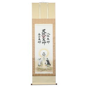 仕様 サイズ 掛け軸寸法:尺五立 約横61×縦181cm 収納箱 1.外箱 2.高級桐箱 説明 太陽を象徴する神様だといわれた御神号のお名前が書かれている掛軸です。家でもっとも尊いとされ、神様とご先祖様をまつる床の間に...