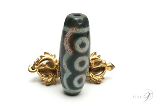 【チベット天珠】 ☆商品情報☆ 長さ:約40mm 直径:約Φ15mm 穴サイズ:約Φ2mm 中国・チベット天珠 ※照明等の関係で実際の色と多少イメージが異なる場合がありますのでご了承ください。 ※こちらは一点物ですので...