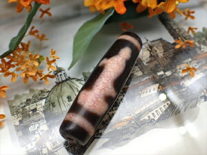 【チベット天珠】 ☆商品情報☆ 長さ:約58mm 直径:約Φ13mm 穴サイズ:約Φ2mm 中国・チベット天珠 ※照明等の関係で実際の色と多少イメージが異なる場合がありますのでご了承ください。 ※こちらは一点物ですので...