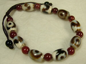 石1Pサイズ:12×直径9mm 重さ:15.5g ●石の種類は瑪瑙です。老天珠の虎牙二眼が使用されています。後ろの組紐部で長さの調節が出来ます。 ※聖なる御守り天珠:魔除け、罪障を除き、財運を呼び寄せ、健康を増進