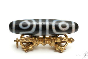 【チベット製品:ペンダントトップ】 九眼天珠 ☆商品情報☆ 全長:約63mm 天珠の直径:約Φ12mm(外せないため長さは省略) 穴サイズ(金剛杵の隙間):約Φ3mm 材質:古銅・アゲート(天珠) 原産地:チベット 上部に金剛杵が施さ...