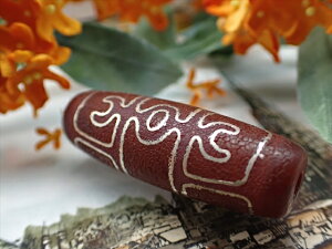 【チベット紅玉髄天珠】 ☆商品情報☆ 長さ:約29mm 直径:Φ約11mm 穴サイズ:約Φ2mm 中国・チベット天珠 ※照明等の関係で実際の色とは多少イメージが異なる場合がありますのでご了承ください。...