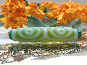 【チベット天珠】 龍眼天珠 緑 ■商品情報 長さ:約57mm 直径:約Φ12.5mm 穴サイズ:約Φ2.2mm 中国・チベット天珠 ※形状やサイズのばらつき、表面や穴周りにキズや凹みがある場合があります...