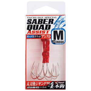 商品説明: ・4本鈎の「クアッドフック」を使った ・タチウオ専用設計アシストが登場! ・噛みつき系牙魚のタチウオを掛けるための専門4本鈎で仕上げたアシストフック。 ・メタルパーツでフックを接続し、シュリンクチューブでコート。