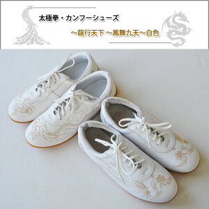商品詳細 商品名 太極拳靴・カンフーシューズ〜龍行天下、鳳舞九天〜白色刺繍 素材 牛革 カラー・種類 白色(龍行天下、鳳舞九天) サイズ 22.0cm〜28.0cm 商品説明 床に吸い付くような安定感!当店のシューズはやわらかく、足に...