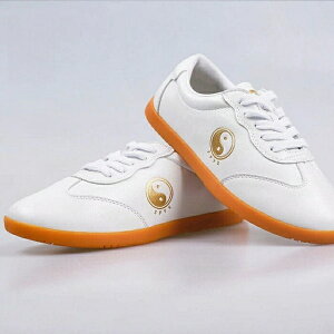 ウーシュー 太極拳シューズ 武術 靴 ソフトレザー スニーカー 牛筋ソール カンフー テコンドー 気功 少林寺拳法 男女兼用 白