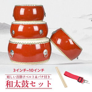9インチ 10インチ。 【セット内容】太鼓×1点・バチ×1組・ストラップ×1本。 【素材】鼓面:牛革 胴/バチ:木製。鼓面に牛革を使用しているため本格的な音を響かせる和太鼓。