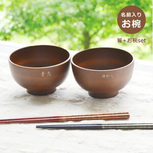 −−−−−−−−−−−−−−−−−−−−−−−−−−−−−−−− 名入れ箸+名入れ椀のペアセット 【カゴ入り・無料ラッピング】 木製のお椀に見えますが、実はペット樹脂とABS樹脂の合成品で、落としても割れにくい素材でできてい