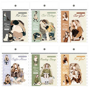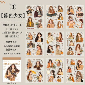 ◆平日16時迄のお支払いは当日出荷(土日祝を除く) おしゃれな人物シールブック 水彩タッチ、手描き風人物イラストが可愛い 型抜きあり、初心者の方も気楽に使えます 耐水PET素材、絶妙な透け感とリアル感が素敵 濡れても破れないのであら