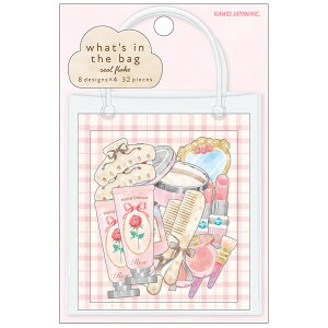 商品名フレークシール ワッツインバッグ 8柄4枚入 美容好きのカバン カミオジャパン ステッカー デコる かわいい 大人 女の子説明おでかけ先にちなんだ持ち物をバッグに詰めた「what's in the bag」シリーズ...