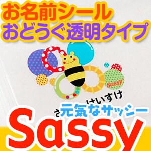 【オーダー 名入れ】【楽ギフ_名入れ】【お名前シール・お名前付けグッズ】【入園入学】 Sassyのキャラクターが可愛く目立つ透明のシールです。 つける素材の色が生かせ一体感のある仕上がり。 耐水加工が施されているので、文具の他にラ