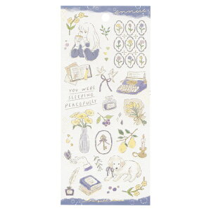 鉛筆で描いたような華奢な線が特徴のイラストシールです。差し色を利かせた華やかな色合いで、雰囲気のあるデコレーションに仕上がります。シール全体に繊細な金箔を散りばめています。・シール素材:マスキングテープサイズ:縦=200mm