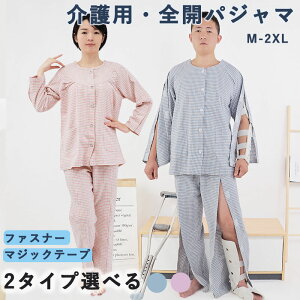 【全開パジャマ】体不自由な方や着替えが困難な方をサポートする全開介護用パジャマです。ウエストから裾まで、ワンタッチテープ、もしくはファスナーで全開フルオープン。寝たり座ったりの状態でも着脱が簡単。 【介護にやさしく】見た目は普通なパジ...