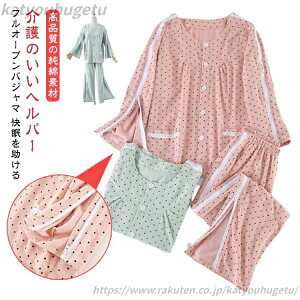 【フルオープンパジャマ】体が不自由な方や着替えが困難な方のために特別に設計された、ベルクロ仕様で、着脱がとても便利です。 寝転んだり座ったりしながらの着脱が簡単で、車いすの方でも着脱が可能です。【介護のいいヘルパー】お