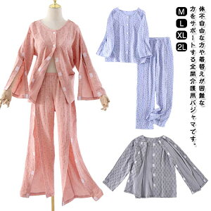 介護用 パジャマ 女性 レディース 春秋 介護パジャマ 長袖 2点セ