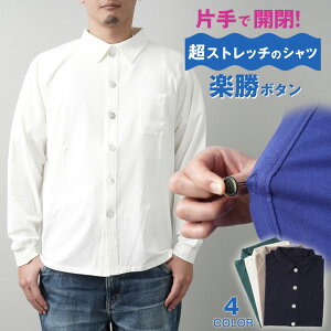 片手でも脱ぎ着が簡単!片手開閉可能な楽勝ボタンシャツ シャツ 介護 介護シャツ 介助 長袖 男女兼用 ユニセックス 綿 コットン 伸びる ストレッチ 片手 着やすい