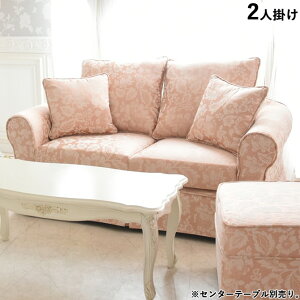 アンティーク ロココ エレガント Spanish ドマーニ ボニータピンク 2人掛けソファー サイズ(cm)幅150×奥行き80×高さ82座面までの高さ41。材質コットン65%、ポリエステル35%、ウェービングベルト...