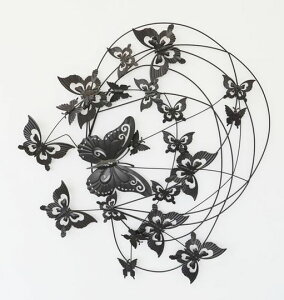 【メーカー直送品:宅配便発送(代引× 後払× 同梱× ラッピング× 対応不可)】 アイアン細工のデザイン工房から直輸入されたお洒落な壁飾りです。 沢山の蝶々が舞う華やかなデザイン。 リアルで繊細なアイアン細工は熟練職人のハンドメ