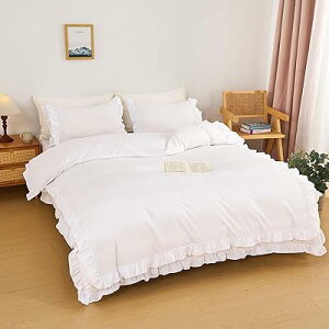 枕カバー ベッドシーツ ボックスシーツ 洋式・和式兼用 寝具カバーセット フリル付き ピーチスキン加工 姫系 洗い替え速乾(ホワイト・セミダブル)ブランド色ホワイトモデ