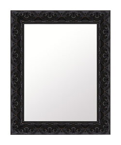 クールなブラック色の鏡 壁掛け ミラー。天然木のフレームと国産 最高品質の鏡を使用し、国内の工場で熟練の職人が一点一点 手作りで製作し、1週間〜10日程度でお届けします。受注製作となりますのでご注文後の変更、キャンセル等はお受