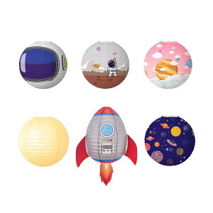 【基本情報】サイズ:30cm。数量:6個セット。素材:紙+鉄線。【壮大な宇宙テーマ】ロケット・惑星・宇宙飛行士のイラスト入り|子供の想像力を刺激するデザイン【安心仕様】角丸加工+柔らかいワイヤー枠。キッズルームデコレーション、
