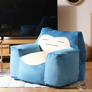 あのカビゴンがソファになった◆かわいいだけじゃなく、座り心地にもこだわりました!◆気がついたら包まれているカビゴンのビーズソファ。身体へのフィット感だけでなく、座っているときの安定感も抜群に。背もたれと肘掛けも付いて