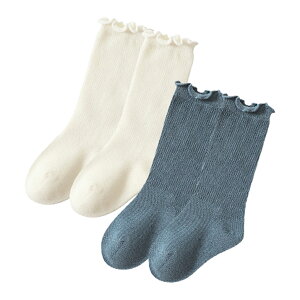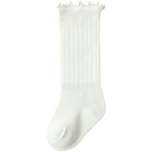 履き口のフリルが可愛いベビー用ハイソックス。コットン綿の糸でゆったり編まれた、履き心地の良いソックスです。シンプルな無地のソックスなのでどんな服にも合わせやすく、男女問わず使用できます。履き口の伸びが強すぎないので太